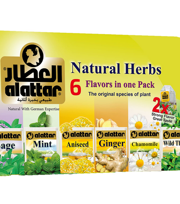 Alattar Natural Herbs 6 Flavours in One Pack (Sage,Mint,Anissed,Ginger,Chamomile,whild Thyme) 24x24 tea bags : This product comes in a case of 24, ideal for large families or businesses.