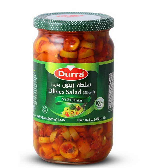 Durra Olives Salad 12x675 g Jar: This product comes in a case of 12, perfect for bulk purchases or regular use.