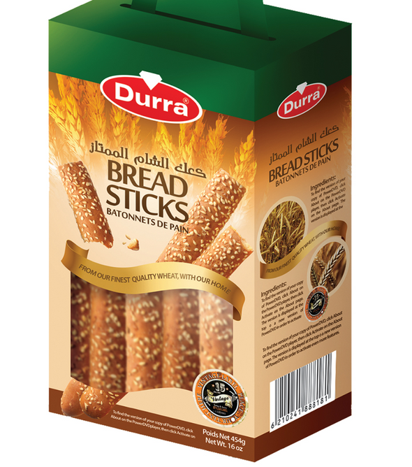 Durra Bread Stick with Sesame 12x454 g Box: This product comes in a case of 12, perfect for bulk purchases or regular use.